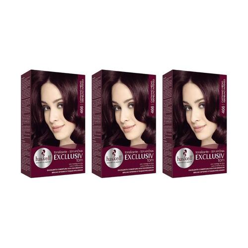 Descrição do produto O tonalizante excllusiv tom haskell colore os cabelos, proporcionando brilho, cor intensa e excelente cobertura dos fios brancos. A formulação do sistema de tonalizantes excllusiv tom haskell contém manteiga de oliva e pigmentos de alta qualidade. O resultado são fios brilhantes, reluzentes e macios, com durabilidade prolongada da vivacidade do tom. Por não conter amônia em sua composição, o tonalizante excllusiv tom haskell pode ser aplicado em cabelos naturais, coloridos, descoloridos, alisados, relaxados ou com escovas progressivas. Recomenda-se não fazer um processo químico imediatamente antes ou após o uso do tonalizante.
