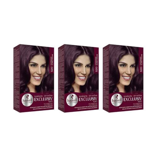 Descrição do produto O tonalizante excllusiv tom haskell colore os cabelos, proporcionando brilho, cor intensa e excelente cobertura dos fios brancos. A formulação do sistema de tonalizantes excllusiv tom haskell contém manteiga de oliva e pigmentos de alta qualidade. O resultado são fios brilhantes, reluzentes e macios, com durabilidade prolongada da vivacidade do tom. Por não conter amônia em sua composição, o tonalizante excllusiv tom haskell pode ser aplicado em cabelos naturais, coloridos, descoloridos, alisados, relaxados ou com escovas progressivas. Recomenda-se não fazer um processo químico imediatamente antes ou após o uso do tonalizante.