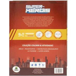 A arte de colorir é uma divertida atividade com efeitos positivos para o desenvolvimento psicomotor da criança. Os desenhos coloridos conduzem-na a distinguir cores e formas, aprimorando a coordenação visual motora e a percepção. Além disso estimula a criatividade, por meio de figuras expressivas, aventureiras, divertidas e fáceis de colorir, possibilitando à criança brincar e descobrir o mundo mágico das cores. Os pequenos irão se divertir a valer dando mais cor à vida destes SUPER-HERÓIS.