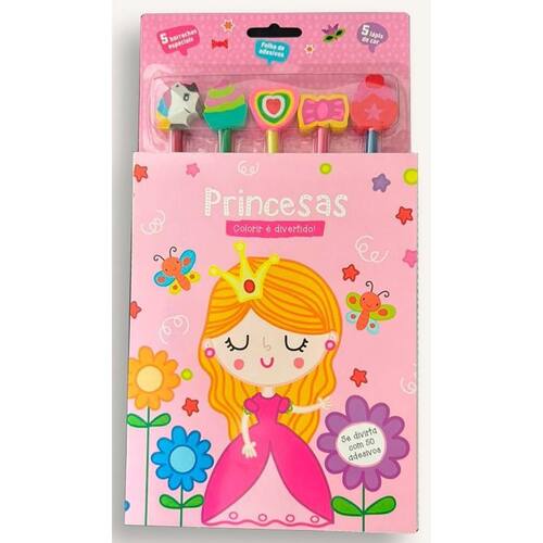 Este livro é muito divertido Preencha os espaços em branco com a mesma cor que está na borda do desenha e veja as lindas princesas ganharem vida, além disso você pode destacar do livro de maneira fácil e para te ajudar na pintura ele vem com cinco lápis lindos com borrachas especiais e muito fofas. Ah, e não para por aqui, você ainda ganha uma cartela com 50 adesivos exclusivos das princesas, muito legal né