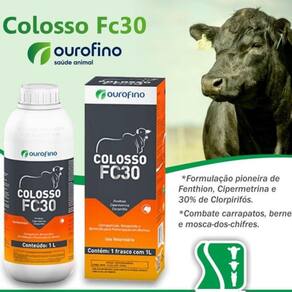 COLOSSO FC30 é indicado para o tratamento contra carrapatos Riphicephalus (Boophilus) microplus, mosca-dos-chifres (Haematobia irritans) e bernes (larvas de Dermatobia hominis) em bovinos.