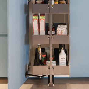 O organizador de armário é um ótima opção para compor sua cozinha. Foi desenvolvido em design inovador com 5 bandejas de altura regulável, para você ajustar de acordo com sua necessidade. Essa prateleira de embutir facilitará sua rotina, pois conta com corrediça telescópica, garantindo funcionalidade. Você poderá armazenar seus alimentos e utensílios na coluna alta deslizante de cozinha, evitando que fiquem sobre a bancada e agregando em otimização de espaço.