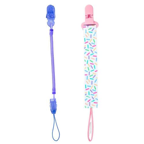 Combo 1 Prendedor de Chupeta Estampado e 1 Mola Pietra Baby Cor: Lilás + Confetti Kit Prendedor de Chupeta Pietra Baby - Segurança e Estilo em Um Só Pacote