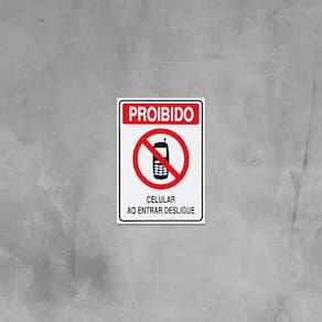 Neste Kit contém 10 unidades de placas com a escrita "Proibido Celular Ao Entrar Desligue".