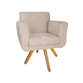 Combo 2 Poltrona Estofada Base Giratória De Madeira Clínica Isabella Corano Bege - LM DECOR