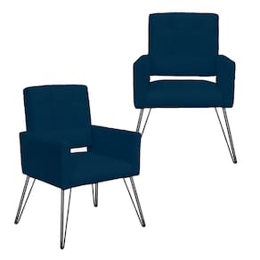 Combo 2 Poltronas Decorativas Para Escritório Pés de Ferro Camila Suede Azul Marinho - LM DECOR