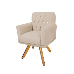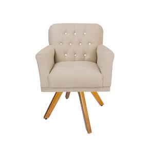 Combo 2 Poltronas Estofadas Base Giratória de Madeira Salão Anitta Suede Bege LM DECOR