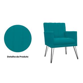 Combo 2 Poltronas Estofadas Para Consultório Pés de Ferro Cecília Suede Azul Turquesa - LM DECOR