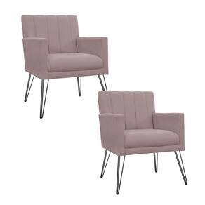 Combo 2 Poltronas Estofadas Para Consultório Pés de Ferro Cecília Suede Rose - LM DECOR - Rosê