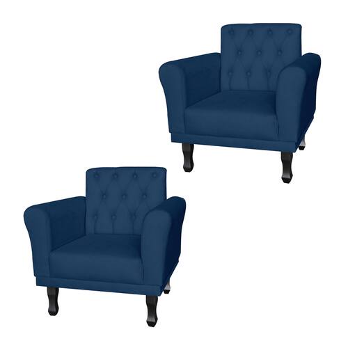Combo 2 Poltronas Estofadas Para Hall de Entrada Classic Suede Azul Marinho - LM DECOR