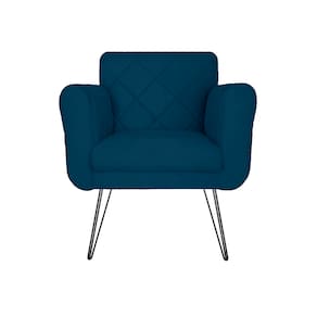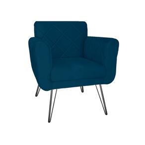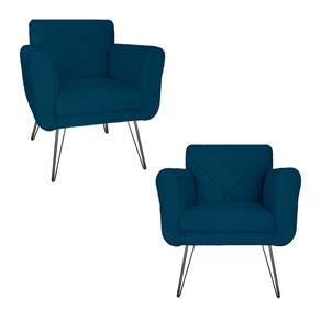 Combo 2 Poltronas Estofadas Sala Comercial Pés de Ferro Isabella Suede Azul Marinho - LM DECOR