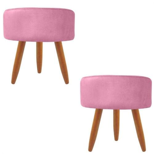 Combo 2 Puffs Decorativos Redondo Pé Palito-tecido Suede Rosa