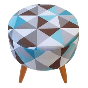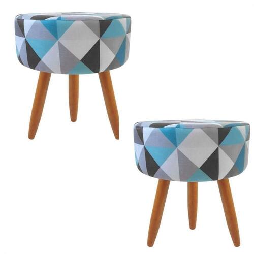 Combo 2 Puffs Decorativos Redondo Pé Palito-tecido Trianglo Azul