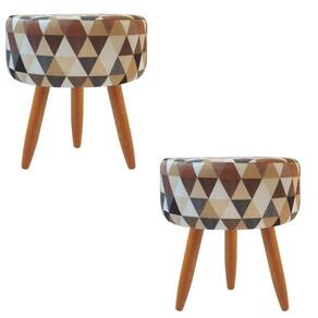 Combo 2 Puffs Decorativos Redondo Pé Palito-tecido Trianglo Bege