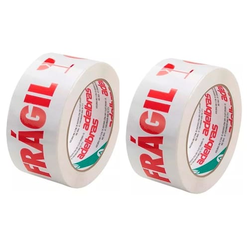 Combo com 2 unidades de Fita Adesiva Impressa Cuidado Frágil 48mm - Rolo com 100 Metros - Adelbras Contem: 2 Rolos de Fita Adesiva Impressa "CUIDADO FRAGIL" A fita para empacotamento Adelbras é a sua melhor escolha em fita adesiva, pode ser usada para empacotamento, lacração de pacotes, fechamento de caixas de papelão, marcação, diferenciação e uso geral. Composição: filme de BOPP impresso por sistema de flexografia, adesivo acrílico. Largura: 48mm Comprimento: 100 Metros Fundo: Branco Impressão: Vermelho Marca: Adelbras Ean: 7896603804229