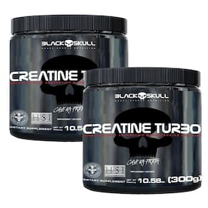 Combo 2X Creatina Creatine 300G Caveira Preta - Black SkullUma nutrição equilibrada tem um papel muito importante na qualidade de vida. Com o ritmo acelerado de muitas pessoas, às vezes, é muito difícil prestar atenção a todos os requisitos que o corpo precisa para estar saudável e forte. Neste sentido, os suplementos cumprem a função de complementar a alimentação e ajudam a obter as vitaminas, minerais, proteínas e outros componentes indispensáveis para o correto funcionamento do organismo. A creatina é um dos suplementos esportivos mais conhecidos e seu principal objetivo é fortalecer o tecido muscular. É produzida naturalmente pelo corpo e está presente em alimentos como peixe, carne, laticínios e ovos. O consumo através de suplementos pode contribuir para um maior desempenho em atividades físicas que precisem intervalos de força curtos e intensos, como o levantamento de peso e outros esportes de alto desgaste que exigem uma recuperação mais rápida. A Creatine Turbo da linha Caveira Preta Series da Black Skull é um suplemento a base de Creatina Monohidratada e Maltodextrina. Onde é comprovado que, a utilização de carboidratos em conjunto com a creatina, promove maior eficácia no efeito da creatina, além do carboidrato agir no aumento de energia, visando apoiar seus resultados nas atividades físicas, oferecendo maior energia e consecutivamente, melhor desempenho. Com seus benefícios, apoia também o ganho de massa e a conclusão dos treinos mantendo a qualidade de suas repetições. O Que Contém dentro desse combo / kit R: Dentro desse combo / Kit Contém 2x Creatina