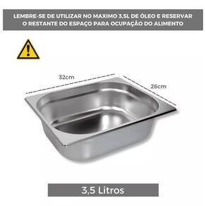 Bem-vindo à Click Shop Fritadeira Elétrica em Aço Inox - Alimentos Crocantes e Saborosos com Praticidade e DurabilidadeDescubra o segredo para preparar alimentos irresistivelmente crocantes e saborosos com nossa Fritadeira Elétrica em Aço Inox. Fritando na temperatura certa, você preserva o sabor e as propriedades dos alimentos, prolonga a vida útil do óleo e garante resultados perfeitos com rapidez, economia e qualidade. Com recuperação rápida da temperatura ideal, seus alimentos ficam ainda mais crocantes e deliciosos. Diferenciais:controle Preciso de Temperatura: Termostato ajustável para frituras sempre no ponto certo.Construção Robusta: Base, cuba e cabeçote em aço inoxidável, garantindo durabilidade e resistência.Fritura Uniforme: Cesto aramado estanhado para uma fritura homogênea e resultados consistentes. Atenção:nossos modelos de fritadeiras de uma cuba 4 a 5 litros compartilham as mesmas características e dimensões. O volume total da fritadeira é de 6 litros, mas recomenda-se utilizar até 4 litros para evitar transbordamento do óleo durante o uso. Especificações Técnicas: Tensão: 110V ou 220V escolha no momento da compra Potência: 2500 Watts Dimensões da Cuba:Volume mínimo de óleo: 2 litros Volume ideal de óleo: 3 litros Volume máximo de óleo: 4 litros Capacidade total do tacho: 5 litros com transbordamento Comprimento: 295 mm Largura: 235 mm Profundidade: 100 mm Dimensões do Cesto de Fritura: Comprimento: 225 mm Largura: 160 mm Profundidade: 80 mm Dimensões da Base em Aço Inox: Comprimento: 400 mm Largura: 270 mm Altura com cabeçote: 240 mm Peso Total: 2,25 kg Material: Cuba: Aço Inox Base: Aço Inox Cesto de Fritura: Aramado estanhado Adquira agora sua Fritadeira Elétrica em Aço Inox e transforme sua forma de cozinhar, garantindo sempre frituras perfeitas e saborosas do vendedor: 07 dias Marca: Não Informado