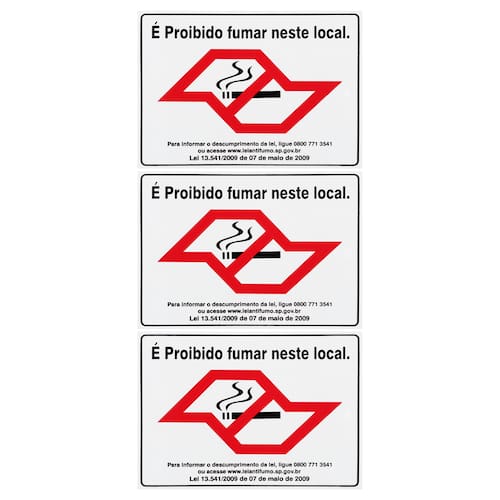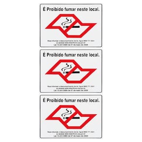 Neste Kit contém 3 unidades de placas com a escrita "É Proibido Fumar Neste Local".