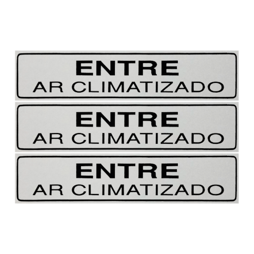 Neste Kit contém 3 unidades de placas com a escrita "Entre Ar Climatizado".