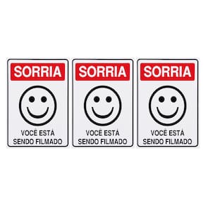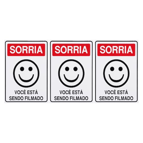 Neste Kit contém 3 unidades de placas com a escrita "Sorria Você Está Sendo Filmado".
