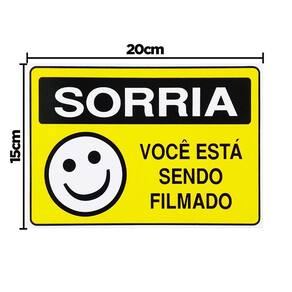 Combo 3 Placas Sorria Você Está Sendo Filmado - P-25 F9e Detalhes Deixe o seu ambiente mais organizado garantindo mais produtividade e segurança com as placas de identificação e sinalização de locais. As placas de sinalização de locais são confeccionadas em Plástico PS com 15cm de altura e 20cm de largura. Neste Kit contém 3 unidades de placas com a escrita Sorria Você Está Sendo Filmado. Informações técnicas: Código: P-25-KIT Marca: Acesso Peso Kg : 0,060 KIT Material: Plástico Dimensões do produto: Altura: 15cm X Largura: 20cm X Profundidade: 0,48cm Dimensões da embalagem: Altura: 15cm X Largura: 24cm X Profundidade: 0,48cm Código Universal: 7898414400287 Ncm: 39031900