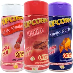 Combo 3 Temperos Para Pipoca Popcorn Sabores - Bacon, Queijo Nacho E Sal Do Himalaia Tempero para pipoca aromatizado.