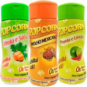 Combo 3 Temperos Para Pipoca Popcorn Sabores - Cebola E Salsa, Molho Mexicano E Pimenta E Limão Tempero para pipoca.