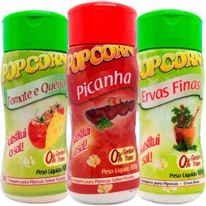 Combo 3 Temperos Para Pipoca Popcorn Sabores - Ervas Finas, Picanha E Tomate E Queijo Tempero para pipoca.