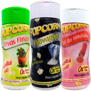 Combo 3 Temperos Para Pipoca Popcorn Sabores - Ervas Finas, Sal Do Himalaia E Flavapop Manteiga Tempero para pipoca.