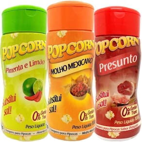 Combo 3 Temperos Para Pipoca Popcorn Sabores - Presunto, Molho Mexicano E Pimenta E Limão Tempero para pipoca aromatizado.