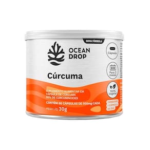 Cúrcuma - Ocean Drop A cúrcuma é uma raiz medicinal conhecida a tempos por suas altas propriedades e benefícios ao bem-estar do corpo, sendo hoje uma das plantas mais pesquisadas da história, com varios estudos associados aos seus benefícios. Benefícios da suplementação: Atua na função cognitiva; No controle dos triglicerídeos e atuação ao HDL; No sistema imune atuando na funcionamento do corpo; Apresenta propriedades e benefícios a pele e unhas; Atua aos nível de energia; Atua Bloqueando substâncias específicas; Ela serve a muitos propósitos, desde ser um ingrediente culinário básico até um componente para bem-estar geral. Suas propriedades, sua história rica e sua origem fazem dela uma das especiarias mais valorizadas e versáteis do mundo. Sugestão de uso: Sugere-se a ingestão de 1 cápsula ao dia ou conforme recomendação profissional;
