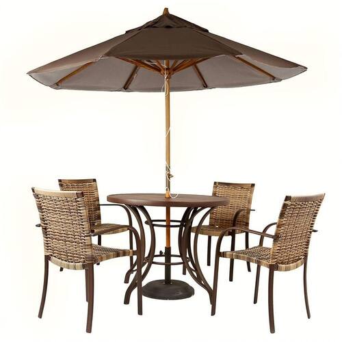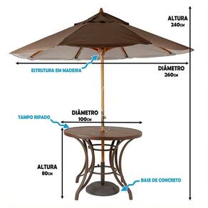 Combo 4 Cadeiras Ascoli Fibra Cor Cappuccino + Mesa Ripado + Central Marrom- Ideal Jardim, Piscina