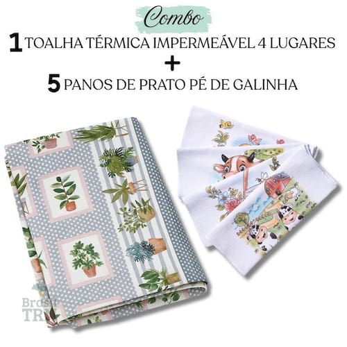 Combo 05 panos de prato branco estampados + 01 toalha térmica de mesa 4 lugares impermeável - toalha de mesa + 5 panos de prato pé de galinha: combo econômico e eficiente se você ama uma casa limpa, organizada e cheia de charme, esse achadinho é pra você - toalha de mesa térmica impermeável: 4 lugares 1,40m x 1,40m . Resistente, linda e super prática. Impermeável de verdade. Sujou Passou pano, limpou. Térmica até 90c, pode apoiar panela quente direto protege sua mesa contra riscos, manchas e desgastes. - estampas e versáteis, uma mais linda que a outra material grosso, durável e que não rasga fácil. Perfeita pra refeições do dia a dia ou para deixar sua mesa apresentável em segundos quando recebe visitas. - 5 panos de prato pé de galinha, grandes e 100% algodão. Alta absorção, tecido grosso e resistente. Ideal pra secar louças, mãos e dar aquele brilho na cozinha. Não desfia fácil e não escorrega. Quer manter tudo lindo e funcional sem esforço Esse combo resolve. Fabricado no brasil. Marca: Não Informado Ean: 7898994070351