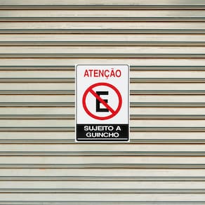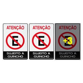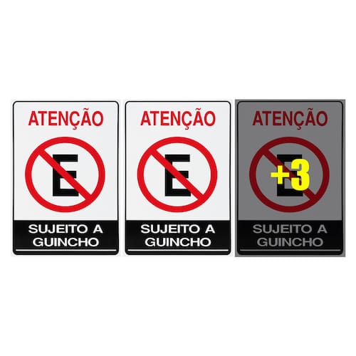 Neste Kit contém 6 unidades de placas com a escrita "Atenção Proibido Estacionar Sujeito A Guincho".