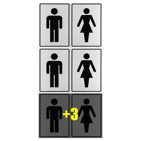 Neste Kit contém 6 unidades de placas com a escrita "Banheiro Masculino / Feminino".