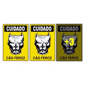 Neste Kit contém 6 unidades de placas com a escrita "Cuidado Cão Feroz".