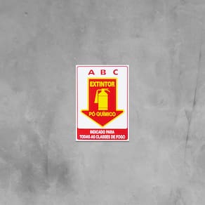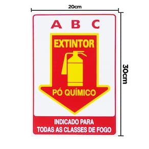 Neste Kit contém 6 unidades de placas com a escrita "Extintor ABC Pó Químico, Indicado Para Todas As Classes De Fogo".