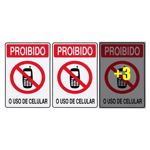 Neste Kit contém 6 unidades de placas com a escrita "Proibido O Uso De Celular".