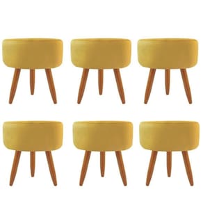 Combo 6 Puffs Decorativos Redondo Pé Palito-suede Amarelo