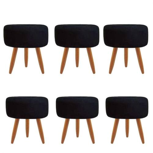 Combo 6 Puffs Decorativos Redondo Pé Palito-suede Preto