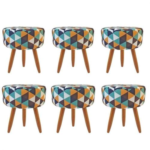 Combo 6 Puffs Decorativos Redondo Pé Palito-triangulo Verde