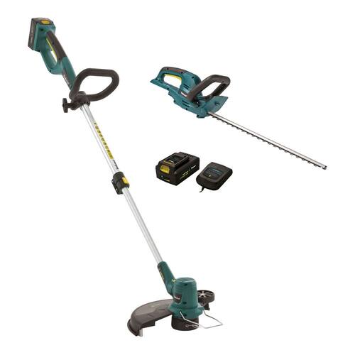 Pensado para manter a limpeza e a beleza do seu jardim o Combo Jardim Tekna conta com dois equipamentos de alta qualidade e desempenho. A bateria inclusa no kit, torna o produto mais prático e econômico, dispensando o uso de cabos de energia. O aparador de grama possui tubo telescópico e diâmetro de corte ajustável, adaptável para todo tipo de jardim, ao aparar cantos de gramados, grama e vegetação rasteira. Ambos possuem sistema bi-manual que só aciona o equipamento