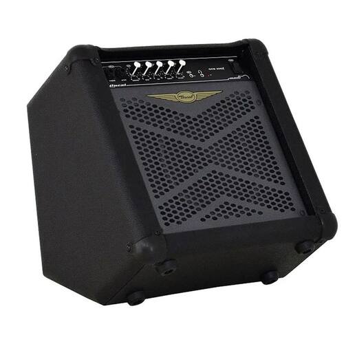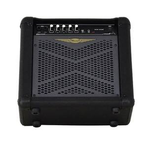 - 30 wrms - 1 alto falante de 6 - controle de volume master - 1 entrada para baixo passivo p10 - 1 entrada para baixo ativo p10 - controle de ganho de entrada gain - controle de graves bass - controle de médio mid - controle de agudos treble