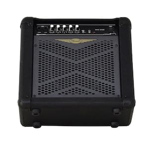 - 30 wrms - 1 alto falante de 6 - controle de volume master - 1 entrada para baixo passivo p10 - 1 entrada para baixo ativo p10 - controle de ganho de entrada gain - controle de graves bass - controle de médio mid - controle de agudos treble