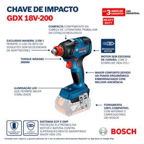 Combo Bosch Furadeira de Impacto GSB 185-LI com Chave de Impacto GDR 18V-200 e 2 Baterias