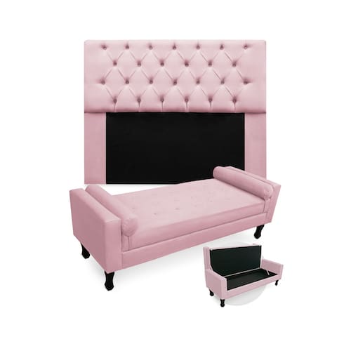 Combo Cabeceira Mirage + Recamier Baú Fenix Solteiro 90 cm Suede Rosa Bebe - LM DECOR