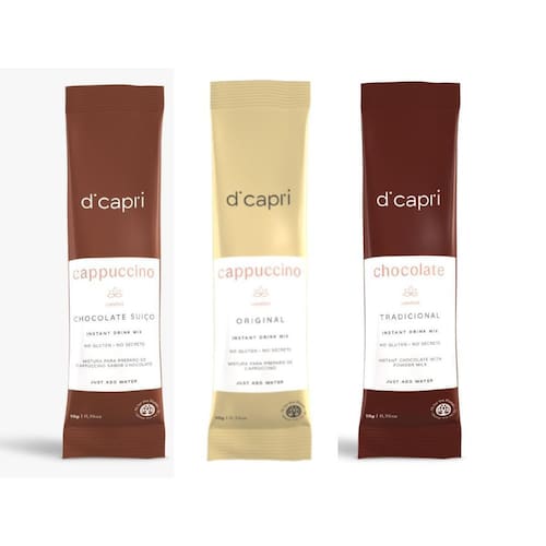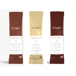 Especificações técnicas: - Marca: Di Capri - Peso: 10g por sachê - Quantidade: 60 unidades - Sabores: Tradicional, Chocolate Suíço e Chocolate com Leite - Modo de preparo: Adicionar água fervente e misturar até dissolver completamente - Versão gelada: Bater no mixer ou liquidificador até obter uma consistência cremosa