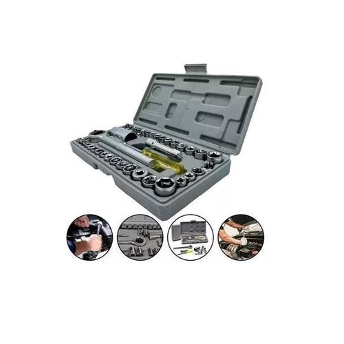 Este conjunto de chave é completo tendo 1 kit de 40 peças e Tem mais a maleta de chaves é pequena e leve você pode levar para onde você quiser E também para você guardar no carro na mochila, extremamente fácil de ser . Conjunto de chave canhão foi desenvolvido para auxiliar você Em suas atividades com ferramentas ele é portátil, super pratico para organizar E você pode leva-lo em situações de Emergência, seu conjunto vai estra lá te ajudando. Tamanho aproximado da caixa: a:12.5xl:24cm Peso aproximado: 1030g 1 - chave catraca 17cm 1 - adaptador 3/8x21mm 1 - adaptador x3/8 5.4cm 1 - chave suporte para bits 3/8 14.1cm 1 - disco de catraca 3/8 1 - prolongador 3/8 6.7cm 14 - soquete 4 / 4.5 / 5 / 5.5 / 6 / 6.5 / 7 / 7.5 / 8 / 9 / 10 / 11 / 12 / 13mm 14 - soquete 5/32, 3/16, 7/32, , 9/32, 5/16, 11/32, 3/8, 13/32, 7/16, 15/32, , 17/32 e 9/16 3 - soquete oitavados , 5/16 e 3/8 2 - soquete 3/8 15 e 16 Cor: cromado Composição: plastico e metal Marca: Não Informado
