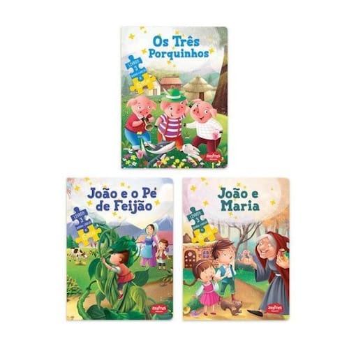 Reviva a magia de Os Três Porquinhos, João e Maria e João e o Pé de Feijão em livros lindamente ilustrados! Cada título vem com 3 quebra-cabeças de 15 peças com cenas das histórias — diversão garantida enquanto as crianças leem e brincam. Além disso, reforçam a compreensão da narrativa, estimulam a atenção, a memória e a coordenação motora. Ideal para pais e educadores que buscam unir leitura, imaginação e desenvolvimento cognitivo de forma divertida e envolvente!