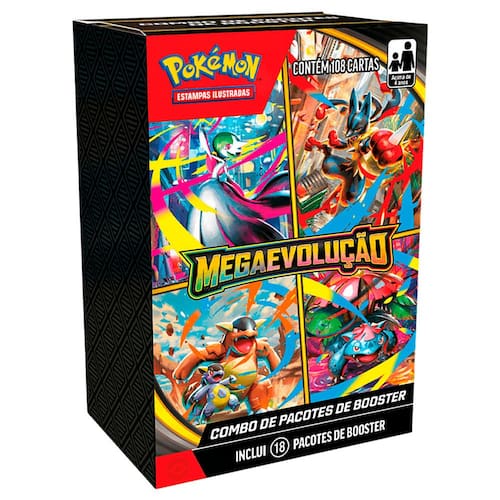 1 x Combo de Pacotes Booster Pokémon Mega Evolução TCG 108 Cartas 10054 35665 - Copag